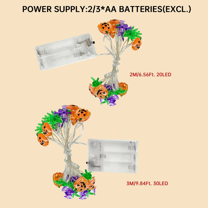 1pc LED Halloween Pumpkin Spider Bat String Light Battery Operated Waterproof Indoor And Outdoor Spooky Atmosphere Hanging Decor